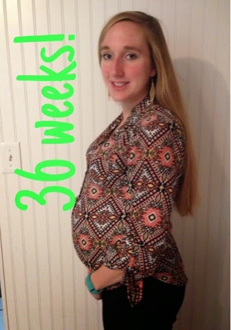 Funny moments this week: This week, I've really started to have to prop my feet up at work. I think the funniest thing is when one of my office mates walked in on Thursday and saw me sitting like that. I explained to her that I was having ankle swelling and that I knew sitting here with my feet propped up looked bad, and she said, "Girl, you are 8 months pregnant! If anyone comes in and has a problem with it, I'll handle it for you!" It cracked me up. Luckily everyone is being super understanding and empathetic, so I'll just keep sitting with my feet propped up!